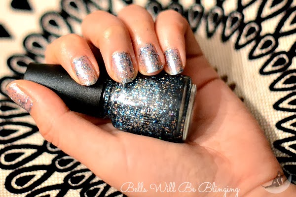 This is with 1 coat, I actually just put on 2 more coats and the blue/silver colour is a lot more dense now, will upload a photo later. There are circle and rectangular sparkles in this polish. Looks great as a top coat too!